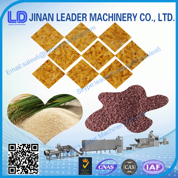 2014 Nueva Cadena de proceso de arroz artificial y reconstituido Presentación Breve Esta línea de producción es una altamente eficiente basada en las teclogogías más avanzadas. Cuenta con las ventajas de automatización alta, operación fácil, buena estabilidad y gran productividad. Utilizando la tecnología de extrusion avanzada y la matriz extrusora especial, nuestra línea de producción de arroz nutricional y reconstituido procesa los granos de buena forma y calidad. Nuestra línea de producción de nutrientes en grano también es llamada línea de producción de arroz nutricional o máquina de arroz reconstituido. Se utiliza harina de arroz como su materia prima. La línea cambia la harina de arroz en grano de arroz y agrega los elementos nutritivos en el rehecho de la extrusión de arroz. De acuerdo con el demanda de los mercados del producto, el cliente puede agregar otras vitaminas y minerales. Parámetros Técnicos