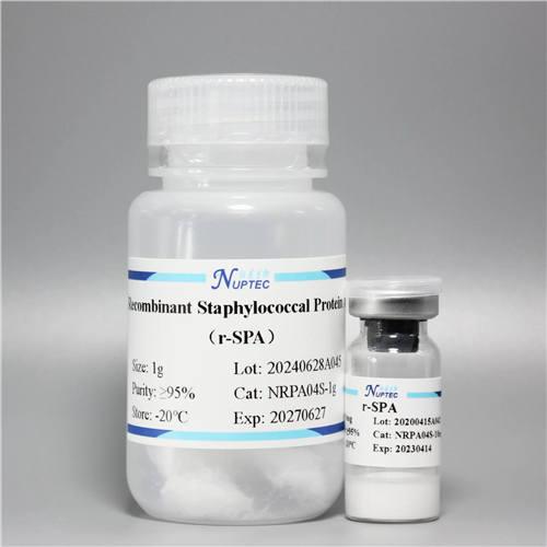 Theory pI: 5.10 Resources: Escherichia coli (E. coli) Purity: ≥95% Storage condition: -20℃ Storage Duration: 3 years Recombinant StaphylococcalProtein A is a cell wall protein deriving from Staphylococcus aureus which exhibits unique binding properties for IgG from a variety of mammalian species and for some IgM and IgA as well. It binds with the Fc region of immunoglobulins preferentially through interaction with the heavy chain. It is conjugated to a wide variety of reporter molecules including fluorescent dyes, enzyme markers, biotin, colloidal gold and radioactive iodine for use in immunology and other biological research without affecting the antibody binding site. It is also immobilized onto solid supports such as agarose beads for total IgG purifying from ascitic fluid, serum, culture supernatants and cell extract or interest protein. Antibody purification proteins are specialized tools designed for the specific capture and purification of antibodies from complex biological samples. In biopharmaceuticals, diagnostic reagent development, and scientific research, efficient and reliable antibody purification is a critical step to ensure the quality and functionality of antibodies.