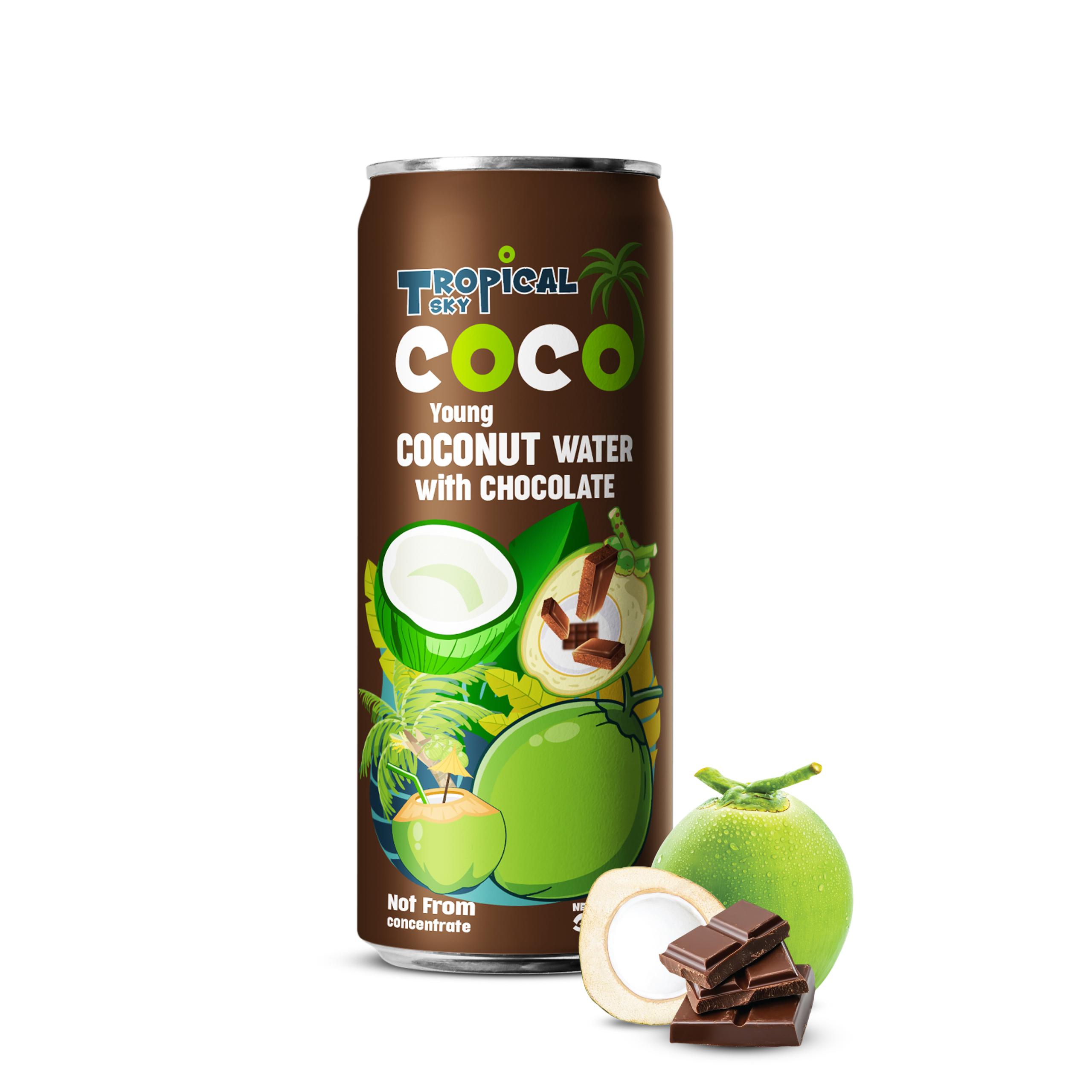 Are you looking for a deliciously unique beverage that blends tropical freshness with rich chocolate indulgence? We are the leading manufacturer of Green Coconut water Mix Chocolate Flavour drinks, packed conveniently in 330ml cans — perfect for on-the-go refreshment or retail shelf appeal. Why Choose Us?Premium Quality Ingredients Tropical Sky’s formulation uses fresh green coconut water blended with high-quality Chocolate for a smooth, exotic flavor that your customers will love. Custom OEM/ODM Services We offer full OEM/ODM solutions to help you launch or expand your brand. From flavor customization and packaging design to private labeling — we tailor everything to your market needs. Modern Manufacturing Facilities Produced in state-of-the-art facilities under strict quality control and international food safety standards (ISO, HACCP, etc.). Attractive 330ml Can Packaging Eye-catching and convenient, our 250ml/330ml/500ml can design is ideal for both domestic and international markets — perfect for retail, vending, and hospitality sectors. Export-Ready & Market-Tested Already popular in several regions, our Green Coconut Mix Chocolate Flavour has been proven to attract health-conscious and novelty-seeking consumers alike.