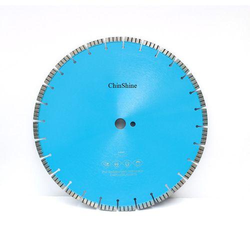Concrete cutting blade mainly used for hard materials, such as concrete, reinforced concrete, cured and green concrete. ChinShine premium laser welded turbo diamond hand saw blades, made with better quality blank saw blades and premium formula. We use K7 new technology and AKYD laser welding technology to weld the cutter head. Laser welded diamond blades provide secure connection, safe cutting, heat resistance, high speed and good sharpness, suitable for waterless use. Application: concrete, asphalt, wall, brick, refractory brick, masonry, etc. For more laser-welded diamond saw blades, please visit our concrete cutting disks and asphalt saw blades. The 14-inch concrete cutting blade is designed for powerful and precise cutting of concrete, brick, and masonry materials. Made with high-strength steel and premium diamond segments, it delivers fast, smooth cuts with minimal vibration. Ideal for construction and roadwork applications, this blade ensures long service life, excellent heat resistance, and consistent performance for both dry and wet cutting tasks.